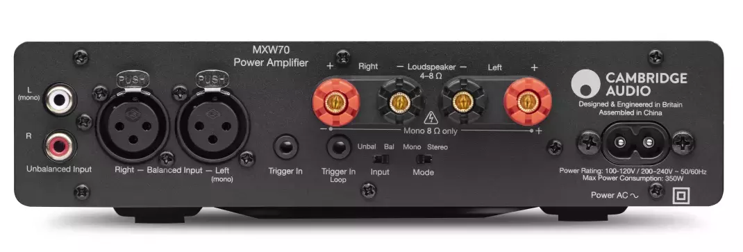 A sztereó MXW70 végfok csatornánként 70 wattos (8 Ohm-on) teljesítménnyel büszkélkedhet, amely még a legigényesebb hangszórókat is képes meghajtani a hagyományos végerősítők mérete és tömege nélkül. Egy egyszerű kapcsolóval a felhasználók az erősítőt sztereó üzemmódból mono üzemmódba kapcsolhatják, így elképesztő, 250 wattos teljesítményt szabadíthatnak fel.