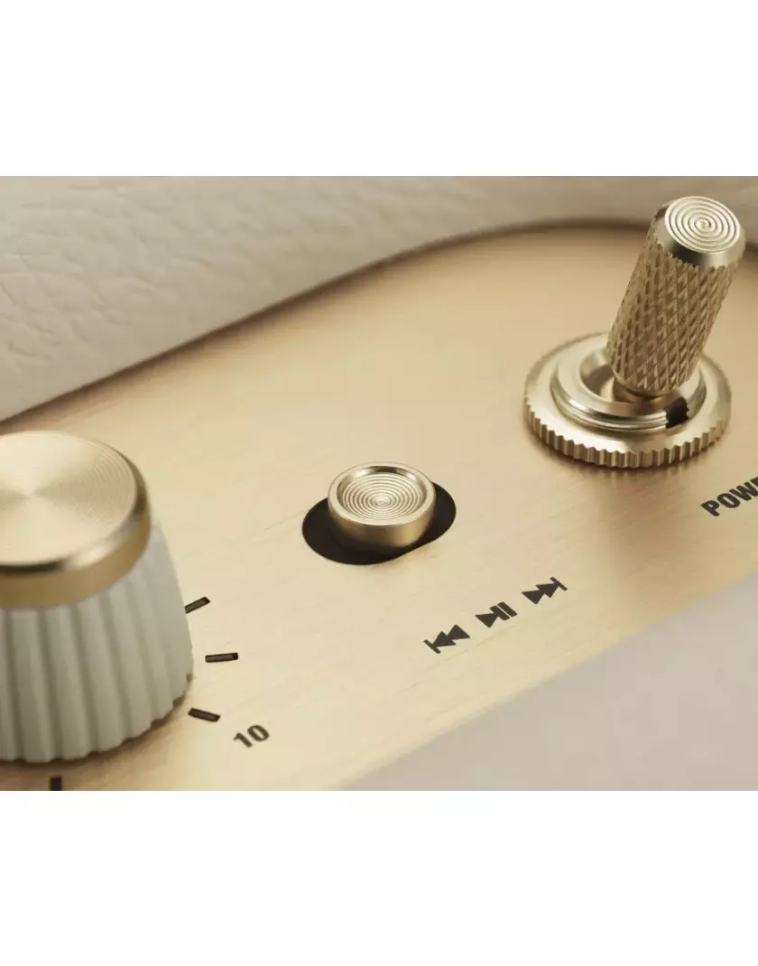 ikonikus dizájn ami kiemelkedik a többi közül – A Marshall fogta a jellegzetes rock ‘n’ roll otthoni hangszórócsaládját, és egy olyan letisztult megjelenést adott neki, amely határozottan kiáll a márka karektere mellett. Ikonikus dizájnja minden más hangszórót leüt a polcról. A hangszórót olyan jellegzetes részletek díszítik, mint a Marshall felirat és a sárgaréz vezérlőgombok, amelyek a rock ‘n’ roll örökségét idézik. Válassza ki az Önnek megfelelő kivitelezést – eredeti fekete, vintage krémszínű vagy laza barna.