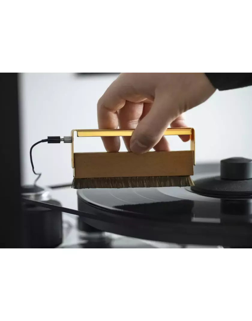 A Pro-Ject Brush It Premium a magasabb szintre emeli a lejátszás előtti lemeztisztítást. A két sor szénszálas sörte kíméletesen tisztítja a lemez barázdáit, és garantálja a problémamentes lejátszást. Javasoljuk, hogy a Pro-Ject kefével tisztítsa meg lemezeit lejátszás előtt. Ha a sörték piszkosak, a tartó segítségével tisztíthatók.