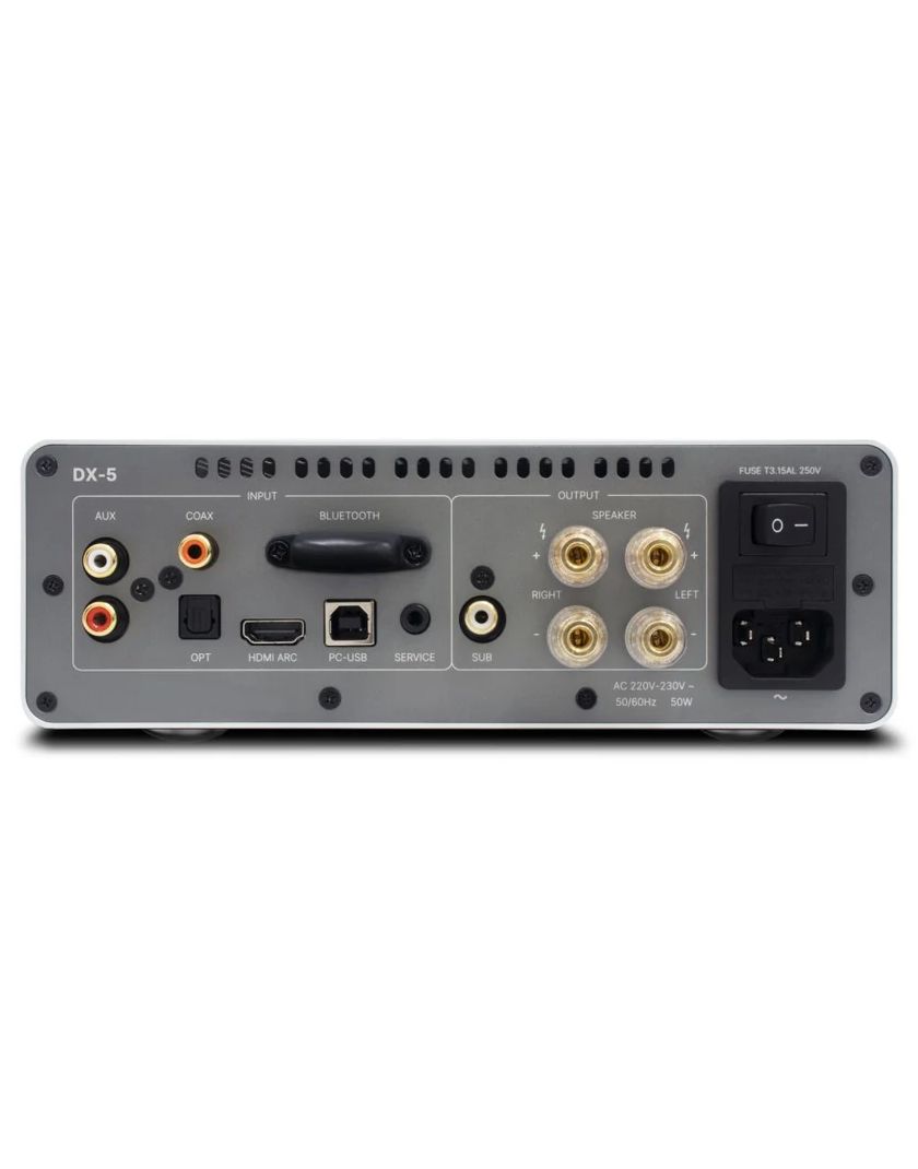 A 4 ohmos hangsugárzóknak csatornánként 33 watt AB osztályú teljesítményt (8 ohmon 25 wattot) juttató DX-5 ideális a modern életstílushoz, mivel robusztus teljesítményt, sokoldalú csatlakoztathatóságot és fejlett hangfeldolgozást kínál, amely kivételes hangminőséget és magával ragadó hallgatási élményt biztosít.