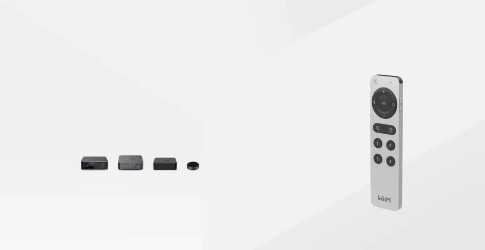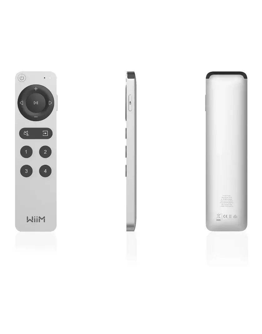 luetooth-on működő távvezérlő valamennyi WiiM zenelejátszóhoz. Segítségével be- és kikapcsolható a készülék, állítható a hangerő (ha nem kapcsoltuk fixre a kimeneti jelszintet), ugorhatunk a következő és az előző zeneszámra, elindítható és szüneteltethető a lejátszás, válthatunk a bemenetek között, lenémítható a hangkimenet. 4 számozott gombjához tetszőlegesen rendelhetünk lejátszási listákat, webrádiókat, hangképeket (equalizer-beállítást), de akár lejátszócsoportot is.